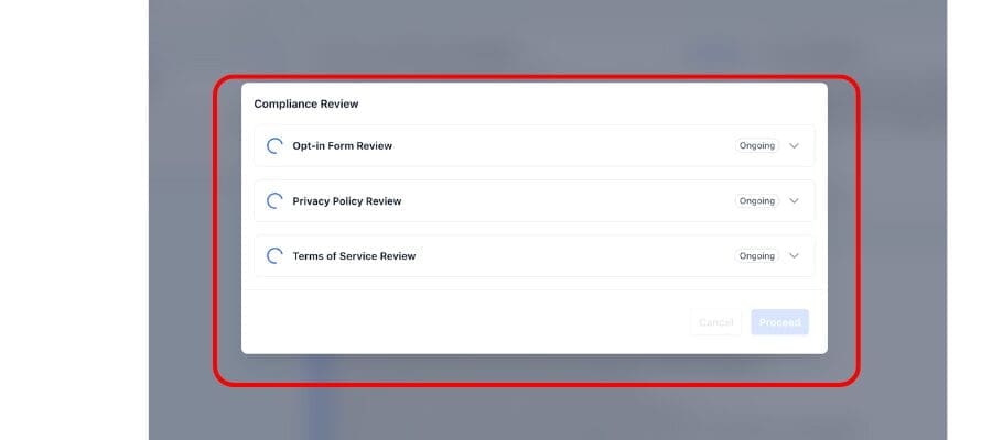 Here’s how it works: when you’re about to review and submit your A2P campaign, GoHighLevel automatically scans your Opt-In Form URL. It doesn’t just stop there—it also retrieves and evaluates the linked Privacy Policy and Terms of Service pages. Then, using an up-to-date checklist based on CTIA, TCR, and major carrier policies, the system runs a full compliance review.