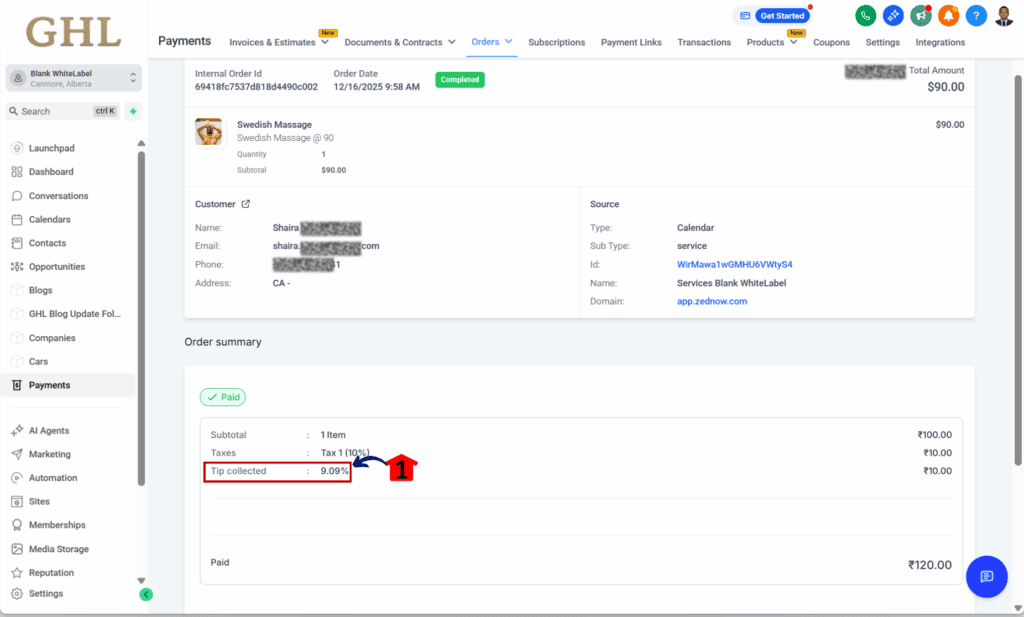 The new API tipping feature in GoHighLevel is more than just an input field. It also improves how tips are handled across key parts of the platform. Once a tip amount is passed through the API, it shows up in all the right places for both the customer and the business.