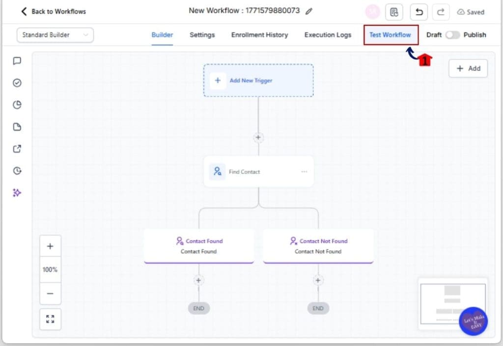 • Sub‑Account → Automation → Workflows → AI Builder.