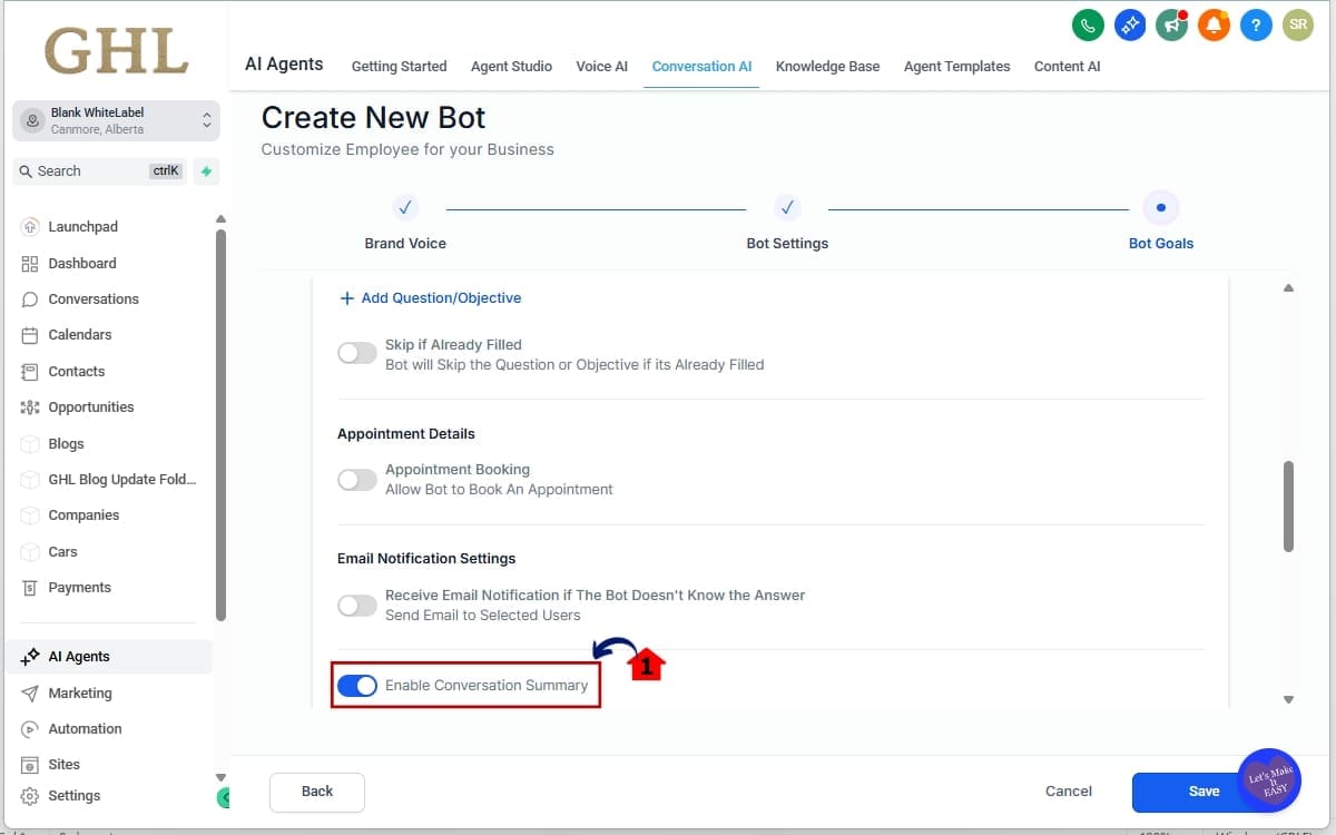 What changed: You can now automatically generate Conversation Summaries and full AI session transcripts based on inactivity, bot sleep events, human handoff, or session boundaries. Each summary can be saved to contact records, trigger workflows, send internal email notifications, or fuel GPT-powered CRM updates inside GHL.