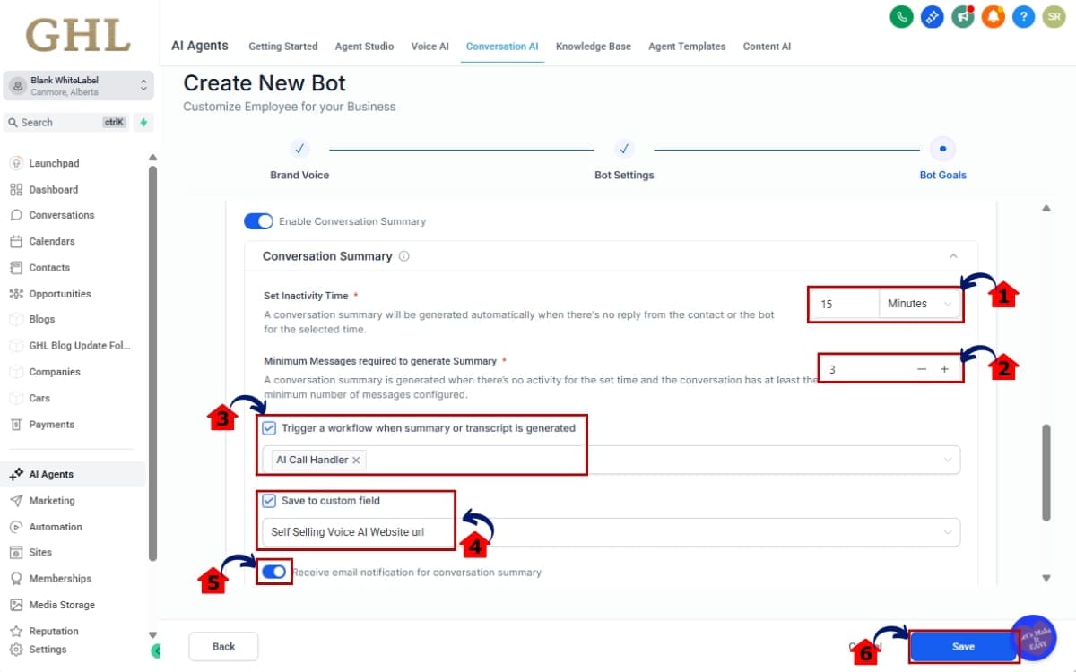 Purpose: Conversation Summaries automatically generate structured AI session recaps and transcripts inside GHL so every Conversation AI interaction becomes usable CRM intelligence.