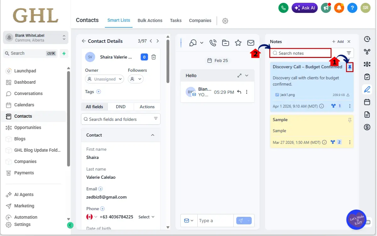 GHL is clearly investing in CRM Notes Management as more than a basic feature. They’re turning it into a true collaboration and documentation layer inside the contact record.