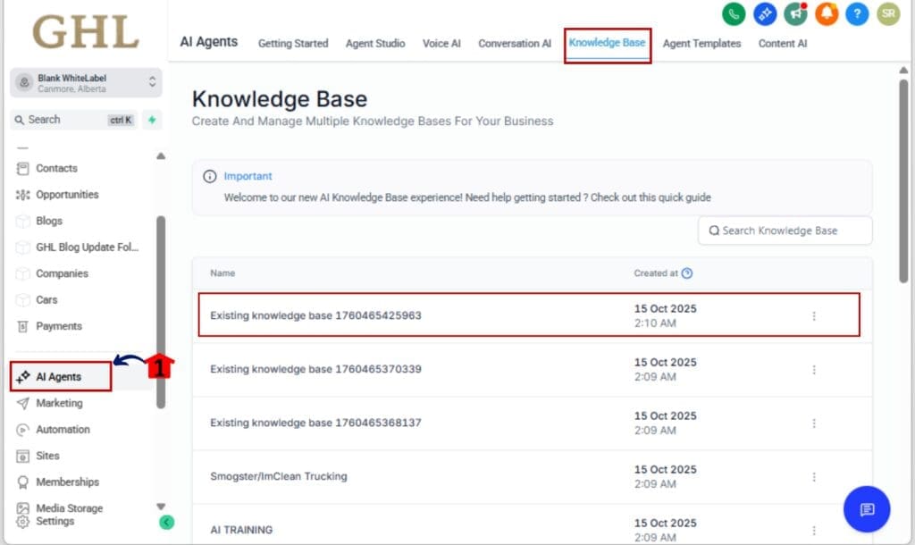 1.1 From your GHL dashboard, click on “AI Agents.”
