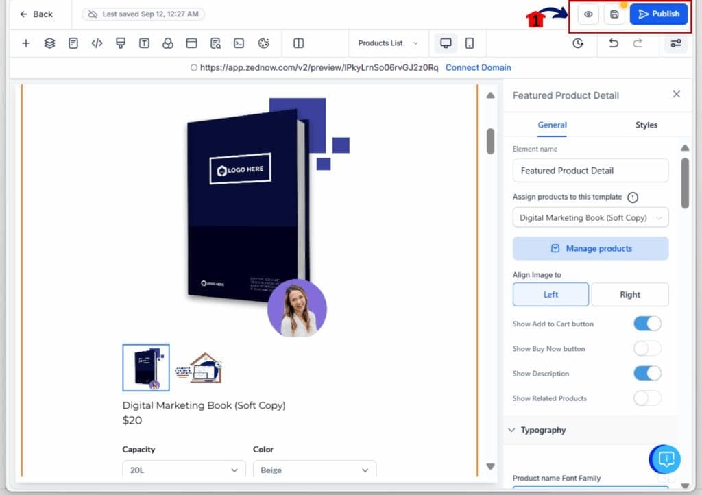 The featured product widget in GHL is completely separate from your regular product pages. It doesn’t use the default or custom PDP layout. That means any changes you make to this widget won’t affect the main product detail page.