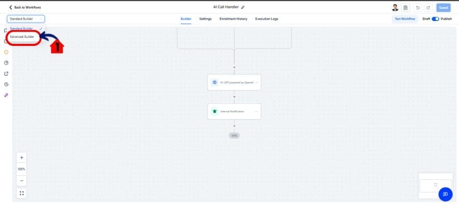 Okay, enough talk about the “why.” Let’s dive straight into the “how.” These new workflow bulk actions features are only available in the Advanced Builder version of the GoHighLevel workflow tool. So, the first thing you need to do is make sure your workflow is open in the most current builder environment. If you’ve created a new workflow recently, you’re probably already there.